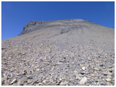 ![]() Le Cheval Blanc![]() ![]() © GEOPORTAIL ![]() ![]() Le barrage d’Emosson est situé au col de la Gueulaz, point de départ de la randonnée. Profiter de la vue panoramique d’un côté sur la chaîne du Mont-Blanc (table d’orientation) et les Alpes suisses et de l’autre sur l’eau bleue du lac et l’impressionnant couronnement du barrage (hauteur 180m et longueur 554m). Descendre par les escaliers en direction du barrage d’Emosson situé en contrebas. L’itinéraire emprunte la route goudronnée (réservée aux véhicules de service) qui traverse le mur du barrage puis se poursuit jusqu’à la cabane du barrage du vieux Emosson. Il faut donc suivre à l’aller le fléchage « Vieux Emosson Barrage par la route ». Après 35mn de marche environ sur la route plane, on aperçoit en haut la cabane du barrage du vieux Emosson et la route s’élève. On arrive à la cabane (2205m) située au pied du barrage du Vieux-Emosson, et dominant le barrage d’Emosson en 1h15 de marche environ depuis le parking. On longe ensuite le vieux lac d’Emosson par la gauche pendant 20 mn puis le sentier s’élève jusqu’au site des Traces des dinosaures (2410m) que l’on rejoint en 2h15 environ depuis le parking. Plus de 800 empreintes datant de 250 millions d’années et dont la taille varie entre 10 et 20 cm ont été découvertes sur le gisement le plus connu d’Europe. Fin juillet/début août, un géologue du muséum d’histoire naturelle de Genève donne des explications sur le site des traces, tous les jours de 11h à 16h lorsque la météo le permet. Poursuivre le chemin en direction du Cheval Blanc. On arrive en 30mn au col du Vieux (2569m). La suite du parcours s’effectue dans un terrain de mauvaise qualité, friable. Vous pouvez cependant suivre le sentier bien tracé sur les 2/3 de la montée vers le Cheval Blanc qui effectue une série de lacets dans la pierraille friable. Le paysage est à couper le souffle, vue plongeante sur les 2 barrages et lacs d’Emosson (l’ancien et le nouveau) et panorama depuis le Mont-Blanc et toute la chaîne jusqu’aux sommets suisses dont le Grand Combin et le Cervin. Ensuite, le parcours devient vertigineux et hasardeux pour parcourir l’arrête finale qui vous mènera jusqu’au Cheval Blanc. J’ai coincé à quelques mètres du sommet, là où une chaîne permet de franchir les dernières roches. Compte tenu du sol friable, la descente de la crête est périlleuse et réservée aux marcheurs expérimentés non sujets au vertige ; à éviter impérativement par mauvais temps, risque de glissade. Quoiqu’il en soit, le panorama est de ce côté-là, donc même si vous n’allez pas au sommet, ça vaut vraiment le coup de s’élever au 2/3 de la montée, il n’y a pas vraiment d’intérêt pour la vue de l’autre côté quand on atteint le sommet, sauf la satisfaction de l’avoir atteint mais pas à n’importe quel risque. Compter 45mn pour rejoindre le sommet depuis le col du Vieux. Si vous arrivez en haut, vous pourrez pique-niquer ou alors redescendre au col du Vieux pour faire la pause déjeuner. Pour le retour, compter 1 heure pour rejoindre les traces des dinosaures depuis le sommet par le même itinéraire. Depuis les Traces des dinosaures, suivre la direction Emosson barrage par la gorge de la Veulade. Une montée vous conduit en 20mn par un sentier sur votre gauche au col suspendu (2500m) où des névés peuvent subsister. La longue descente s’effectue ensuite en suivant le vallon de la Veulade et son torrent. Compter 45 mn pour atteindre la bifurcation (2170m) Vieux Emosson Barrage/Emosson Barrage (poursuivre le sentier sur la droite en direction de Emosson barrage) et encore 35mn pour rejoindre la route du barrage d’Emosson que vous avez empruntée ce matin. Il vous faudra encore 20 bonnes minutes pour remonter jusqu’au parking, la fatigue se faisant sentir. © Reproduction interdite | ||
