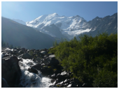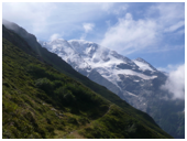 ![]() Col du Tricot depuis Bellevue (les Houches) ![]() ![]() © GEOPORTAIL ![]() ![]() À l’arrivée du téléphérique, dirigez-vous en léger contrebas vers la gare Tramway du Mont-Blanc de Bellevue et traversez la voie. Le sentier bien fléché descend dans la forêt vers les alpages de l’Are. Au premier portillon, poursuivre tout droit, passer un deuxième portillon et on arrive à une bifurcation. On laisse sur la gauche le sentier qui remonte en direction du glacier de Bionnassay vers la gare Tramway du Mont-Blanc du Nid d’Aigle et on atteint par un sentier qui descend en courts lacets la passerelle suspendue sur le torrent du glacier de Bionnassay (1700m). Spectacle saisissant sur le glacier, le dôme du goûter, l’aiguille de Bionnassay et le Mont-Blanc. Traversez la passerelle, le sentier remonte d’abord en forêt puis assez vite chemine dans une grande combe à découvert dans un panorama grandiose. On aperçoit le refuge de tête Rousse et le refuge de l’Aiguille du Goûter, point de départ de l’ascension du Mont-Blanc par la voie classique. Arrivé au col du Tricot que l’on a en point de mire très tôt dans la montée, on domine une autre vallée, celle des chalets de Miage en contrebas, et dans la même ligne un peu plus haut les chalets du Truc. Panorama à 180° avec les pistes de ski des Contamines-Montjoie, le mont Joly, le col du bonhomme et sur la gauche, les dômes enneigés de Miage. À partir du col du Tricot, on peut suivre sur la gauche le sentier en direction du refuge du Plan Glacier (qui ne figure pas sur la carte IGN mais pas de difficulté pour le suivre), sentier en balcon sur la vallée de Miage et qui permet d’avoir des points de vue différents sur les Dômes de Miage. On s’arrêtera en chemin sans chercher à gagner le refuge (2h30) car il faut penser au retour, pour un pique-nique bien plus tranquille qu’au col du Tricot. Revenir sur ses pas jusqu’au col du Tricot, puis emprunter l’itinéraire en sens inverse. Du col du Tricot : Chalets de Miage (1559m) :1h20 aller Chalets Truc (1720m) : 1h55 aller Mont Vorassay (2299) : 0h30 aller Refuge Glacier (2690m) : 2h30 aller © Reproduction interdite | ||