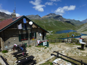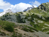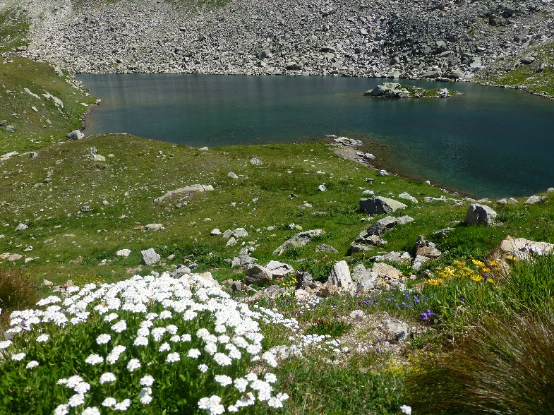 ![]() Col du Nivolet (Massif du Grand Paradis, Val d'Aoste)![]() ![]() ![]() ![]() L’itinéraire n°3 est très bien fléché au départ de Pont. Le sentier grimpe rapidement à travers une forêt éparse puis des rochers. En un peu moins d’une heure, on arrive à une croix d’où la vue est superbe sur le sommet du Grand Paradis et la Tresenda. Un peu plus loin sur un rocher, les directions suivantes sont fléchées sur la gauche : Refuge Savoia, Refuge Di Chivasso et Col du Nivolet. 30mn plus tard, on rejoint un grand replat herbeux avec des roches sur la gauche. C’est la zone d’observation des chamois ; des promeneurs qui se sont levés tôt reviennent de les observer, avec un peu de chance, vous pourrez en apercevoir vous aussi à l’œil nu. 20mn plus tard, on rejoint la bergerie Grand Collet et on laisse sur la gauche la bifurcation du sentier 2A en direction du Grand Collet ; continuer tout droit. On poursuit toujours dans le grand replat, alpage du Nivolet avec ses ruisseaux et ses marmottes, jusqu’à une petite route accessible aux voitures. Se retourner pour la vue sur le Grand Paradis. Emprunter ensuite cette route sur la gauche en remontant jusqu’à un premier refuge sur la droite, le refuge de Savoie (2533m) et ses 2 lacs sur la gauche que l’on atteint en 2h40 depuis Pont. Le deuxième refuge, le refuge Di Chivosso, est un peu plus haut sur la gauche, à 20mn toujours en suivant la petite route goudronnée qui relie le Valsavaranche à la vallée de l’Orco. Poursuivre la route en descendant un peu après le Col du Nivolet (2612m), pour la superbe vue en surplomb sur le lac Agnel, bleu nuit et son voisin, le lac Serru, bleu turquoise. Vous pouvez piqueniquer au col du Nivolet sur les grandes dalles pierreuses. Le retour s’effectue par le même itinéraire. Sur la droite en point de mire, le sommet du Grand Paradis s’il n’est pas dans les nuages. Compter 1h du refuge de Chivasso pour rejoindre la bergerie Grand Collet puis 45mn pour retourner à la Croix d’où vous entamerez la descente assez aérienne sur Pont que l’on rejoint en 45mn. | ||