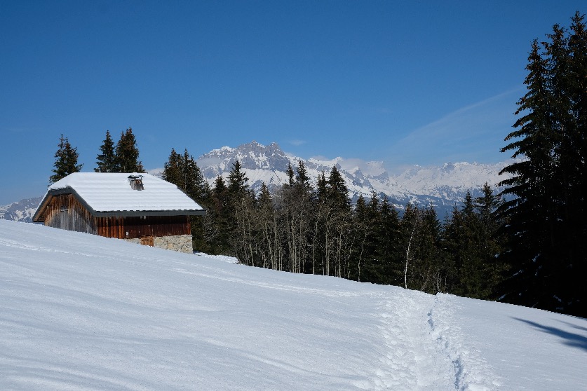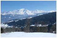 ![]() | ![]() Raquettes Boucle des Charnes (Cordon)![]() ![]() ![]() Garer-vous au parking du Dandry (1200m) au-dessus de Cordon à 40mn de Chamonix. En contrebas du parking, table d’orientation avec une vue déjà magnifique à 180°. A l’aller, bonne grimpette exigeante. On passe devant quelques fermes d’été avant de rejoindre en 30mn le lieu-dit «·Les Arcets (1363m). L’itinéraire chemine ensuite en forêt avant d’atteindre en moins d’une heure le chalet «·Les Chars·» (1400m) d’où la vue est dégagée au-dessus des sapins. La descente s’effectue en 30mn, au départ en forêt puis en bord de piste jusqu’à Frebouge d’en haut (1300m). Profitez-en ensuite pour visiter le village authentique de Cordon surnommé «·le balcon du Mont-Blanc·», son église baroque avec son clocher à bulbe, ses vielles fermes et ses chalets traditionnels. | ![]() |