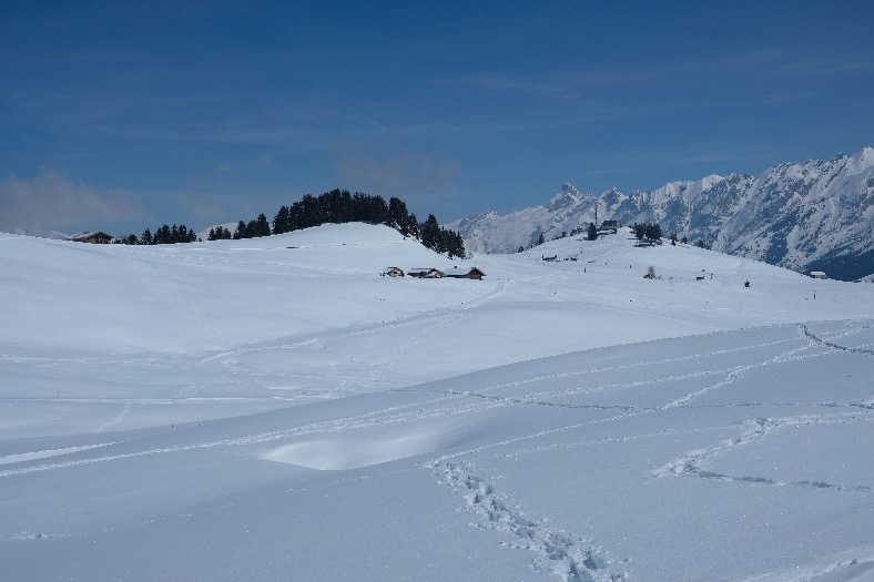 ![]() | ![]() Raquettes Boucle Plateau de Beauregard (La Clusaz)![]() ![]() ![]() Garez-vous au parking du col de la Croix Fry (1470m) à 1h20 depuis Chamonix. On peut également accéder à la boucle par la télécabine de Beauregard au centre du village de La Clusaz ou prendre le skibus jusqu’au Col de la Croix Fry. La boucle damée piétons-raquettes chemine au niveau du domaine nordique vallonné de ski de fond. Compter 3h/3h30 avec l’aller-retour depuis le col de la Croix-Ferry pour rejoindre la boucle. Les vues sont intéressantes sur les différentes chaînes de montagnes alentours tout au long du parcours qu’on effectue dans le sens des aiguilles d’une montre. On notera plus particulièrement au fil de la ballade les vues sur la chaîne des Aravis et le Col des Aravis, la vallée du Bouchet, le site des Confins, les villages du Grand-Bornand et du Chinaillon, la vue plongeante sur La Clusaz. Vous pouvez pique-niquer au niveau des Vaunessins avant la montée vers la Pointe de Beauregard (1644m), clou de la ballade avec sa table d’orientation. En fin de journée, si vous êtes en voiture, je vous conseille de faire un détour jusqu’au deuxième site Nordique de ski de fond de La Clusaz. Garez-vous au terminus de la route à proximité de la Chapelle des Confins. Le site est ensoleillé en fin de journée. Il se trouve au pied de la chaîne des Aravis et l’on jouit d’un beau panorama sur la vallée de la Lanchette qui redescend à La Clusaz. Un bel endroit avec d’autres chemins piétons-raquettes, Le Danay (au sommet, panorama à 360° sur La Clusaz et Le Grand Bornand), La Lanchette et le chemin du Lac, se reporter au plan. | ![]() |