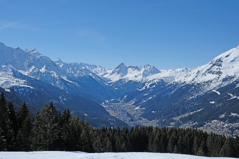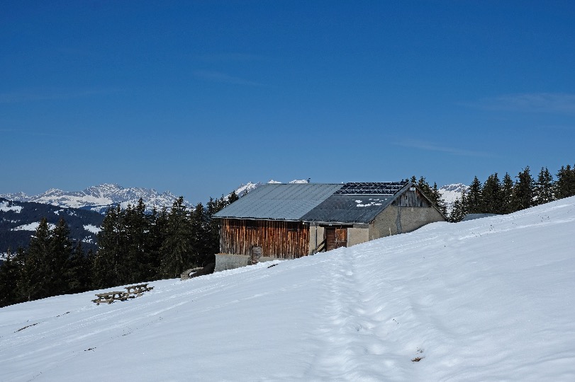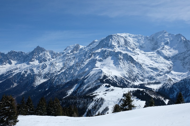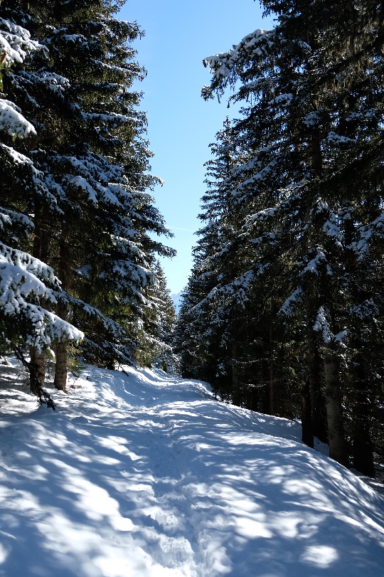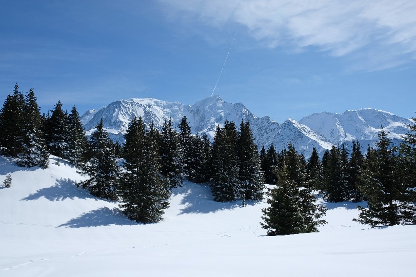 ![]() | ![]() Raquettes Col Voza, Le Prarion (Bionnassay)![]() ![]() ![]() ![]() Garez-vous au parking du Crozat (1420m) au-dessus du village de Bionnassay, à 45 mn de Chamonix (attention, nombre de places limité). Après Saint-Gervais, en direction des Contamines-Montjoie, prendre à gauche la direction de Bionay puis encore à gauche la petite route de montagne en direction de Bionnassay (croisements difficiles, ne pas s’aventurer si chutes de neige récentes) Depuis le parking, prendre la direction du col de Voza (indiqué à 45mn) par Le Fioux. La piste s’élève avec déjà une très jolie vue sur le Dôme et le refuge du Goûter, le glacier et l’arrête de Bionnassay. On rejoint le col de Voza (1650m) plus rapidement qu’indiqué, en 30mn. J’ai choisi de traverser la voie ferrée et de remonter sur la gauche de la piste de ski «·Col Voza·» puis arrivée un peu au-dessus du 1er chalet au milieu de la piste (1890m), de prendre la trace sur la gauche en direction des sapins qui correspond au chemin d’été vers l’alpage La Charme (non fléché en hiver, trace des raquettes faite par les randonneurs). Compter 35mn pour rejoindre le chalet d’alpage d’été. L’endroit (1800m) est propice pour pique-niquer, il y a des tables en bois appartenant au chalet mais qui peuvent être entièrement recouvertes suivant la couche de neige. La vue est magnifique sur les Dômes de Miage, la vallée des Contamines-Montjoie et le Mont-Joly. A partir de La Charme, on peut rejoindre l’hôtel du Prarion (1860 m) par la boucle du Charme généralement tracée, se reporter p11 du guide «·Raquette à neige·au Pays du mont-Blanc », durée complète de la boucle indiquée à 1h30, durée La Charms-hôtel Le Prarion environ 35mn. 2 tables d’orientation vous dévoilent le nom de tous les sommets·! Celle face à la chaîne du Mont-Blanc balaye de gauche à droite du Mont-Buet au Col du Bonhomme. Possibilité de coupler également avec la boucle du Petit Prarion qui démarre au-dessus de l’arrivée de la télécabine du Prarion, se reporter p12 du guide «·Raquette à neige·au Pays du Mont-Blanc », et conduit à la Tête du Petit Prarion (1896m) en cheminant au travers d’une forêt clairsemée, durée de la boucle indiquée à 1h. Suivant les conditions d’enneigement, on peut même poursuivre jusqu’au sommet du Prarion (1967 m) où la table d’orientation est généralement recouverte par la neige. Le point de vue à 360° est extraordinaire et qualifié de «·plus beau tour d’horizon d’Europe·». Vues sur le Massif du Mont-Blanc, le Massif des Aravis, les falaises des Fiz, la vallée de l’Arve et de Chamonix, la vallée des Contamines-Montjoie, etc. Compter 1 bonne heure en aller-retour depuis l’arrivée de la télécabine du Prarion. Pour le retour au col de Voza, j’ai suivi le bord de la piste bleue «·Les Aillouds·» pendant 25mn mais c’était domaine skiable était fermé. Compter encore 25mn pour redescendre du Col de Voza jusqu’au parking du Crozat. Si vous voulez faire plus simple, emprunter en aller-retour piéton la télécabine du Prarion depuis Les Houches et enchaîner les 2 boucles de La Charme et du Petit Prarion (p11 et 12 du guide «·Raquettes à neige au Pays du Mont-Blanc·», durée 1h30 + 1h) | ![]() |