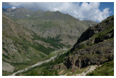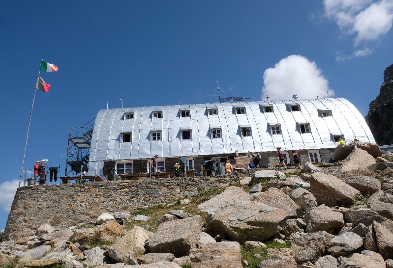 ![]() Refuge Vittorio Emanuele![]() ![]() ![]() ![]() Le sentier de randonnée n°1 démarre de Pont (1951m) village au fond de la vallée de Valsavarenche. Le sentier est très fréquenté par les « alpinistes » qui vont faire l’ascension du Grand Paradis (4061m) et dorment au refuge. Un peu d’histoire : en 1856, Victor-Emmanue II fit de ce territoire une Reserve Royale de Chasse de Savoie. Au départ de Pont, on rejoint par un chemin à plat qui longe le torrent rive droite au fond du vallon de Seyvaz en 20mn le refuge Tetra-Lyre (Restauration-Buvette). Ensuite, empruntez le sentier qui mène au refuge Vittorio Emanuele. Ce sentier est agréable et bien aménagé pour faciliter la montée (portions anciennes empierrées, portions avec rondins de bois, etc.). Le sentier s’élève d’abord dans l’ombre d’une forêt d’épicéas clairsemée. En 45mn, on rejoint une belle cascade sur la gauche. 10mn plus tard, on sort de l’étage forestier. A 1h (du départ), on aperçoit sur la droite le Grand Paradis et le mont Tresenda qui ne vous quitteront plus jusqu’au refuge. Les torrents et cascades dévalent de la montagne, les marmottes sont en chemin. Vous pouvez déjeuner au refuge ou pique-niquer au bord du petit lac de montagne devant le refuge. Le retour emprunte le même itinéraire. Possibilité de faire le retour en empruntant le sentier de liaison entre le refuge Vittorio Emanuele et le refuge Chabot (n°1A temps indiqué à 1h45 pour la traversée et à 2h depuis le refuge) puis de redescendre du refuge Chabot (2710m) au parking Pravieux en amont de Pont (temps estimé à 2h) soit une randonnée de 6h environ. Prévoir si possible 2 voitures, une que vous laisserez le matin au parking Pravieux (1869m) et l’autre à Pont, point de départ de la randonnée ou bien il vous faudra redescendre la route de Pont au parking Pravieux au retour. | ||